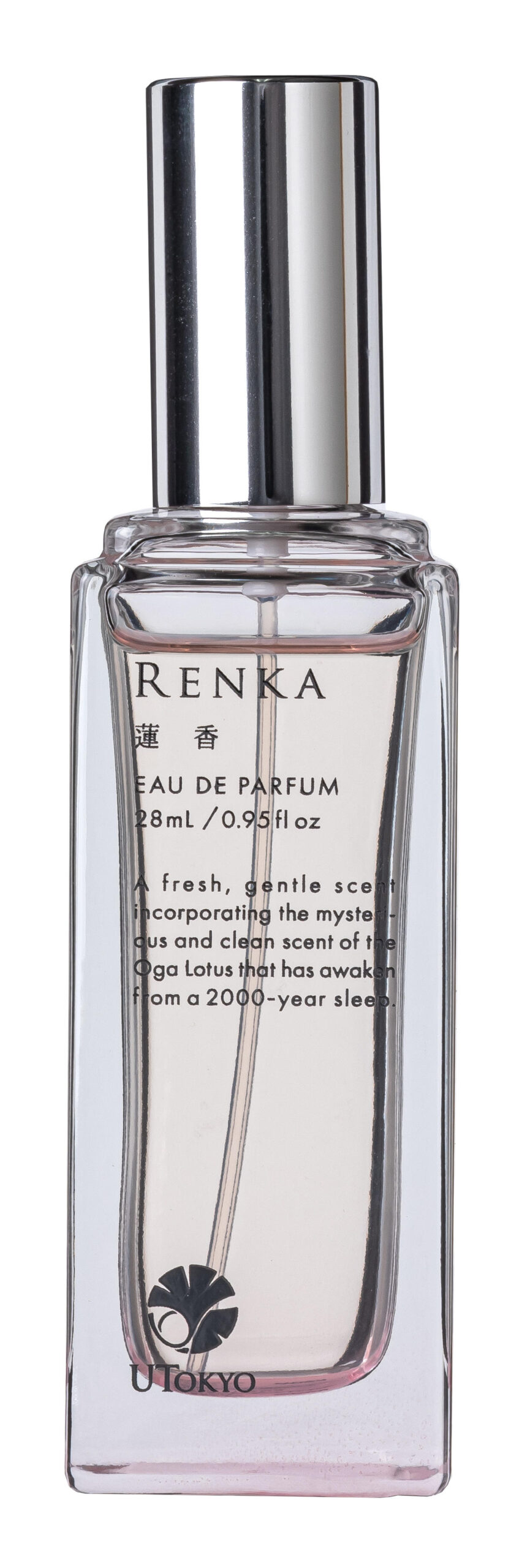 東京大学と化粧品メーカーは、1985年以降大賀蓮の香りの分析・研究を行い、香りキー成分に、2000年の眠りから覚めて水辺に凛と咲く大賀蓮の花のイメージをプラスして一代目の「蓮香」の製品を完成させ、2007年の発売後、大変な人気商品となりました。このたび、スタイリッシュな角型の瓶というパッケージの装いも新たに、二代目となるフローラル・グリーンの新しい香りの「蓮香」オードパルファムを発売いたしました。