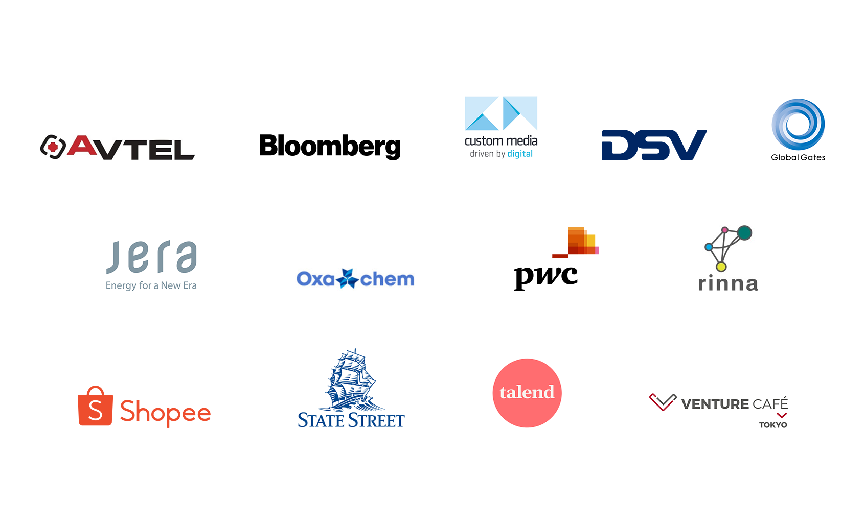 株式会社AVTEL、ブルームバーグ・エル・ピー、カスタムメディア株式会社、DSV Solutions Japan、株式会社グローバルゲイツ、株式会社JERA、オクサリスケミカルズ株式会社、PwC税理士法人、rinna株式会社、ショッピージャパン株式会社、ステート・ストリート信託銀行、Talend株式会社、一般社団法人ベンチャー・カフェ東京