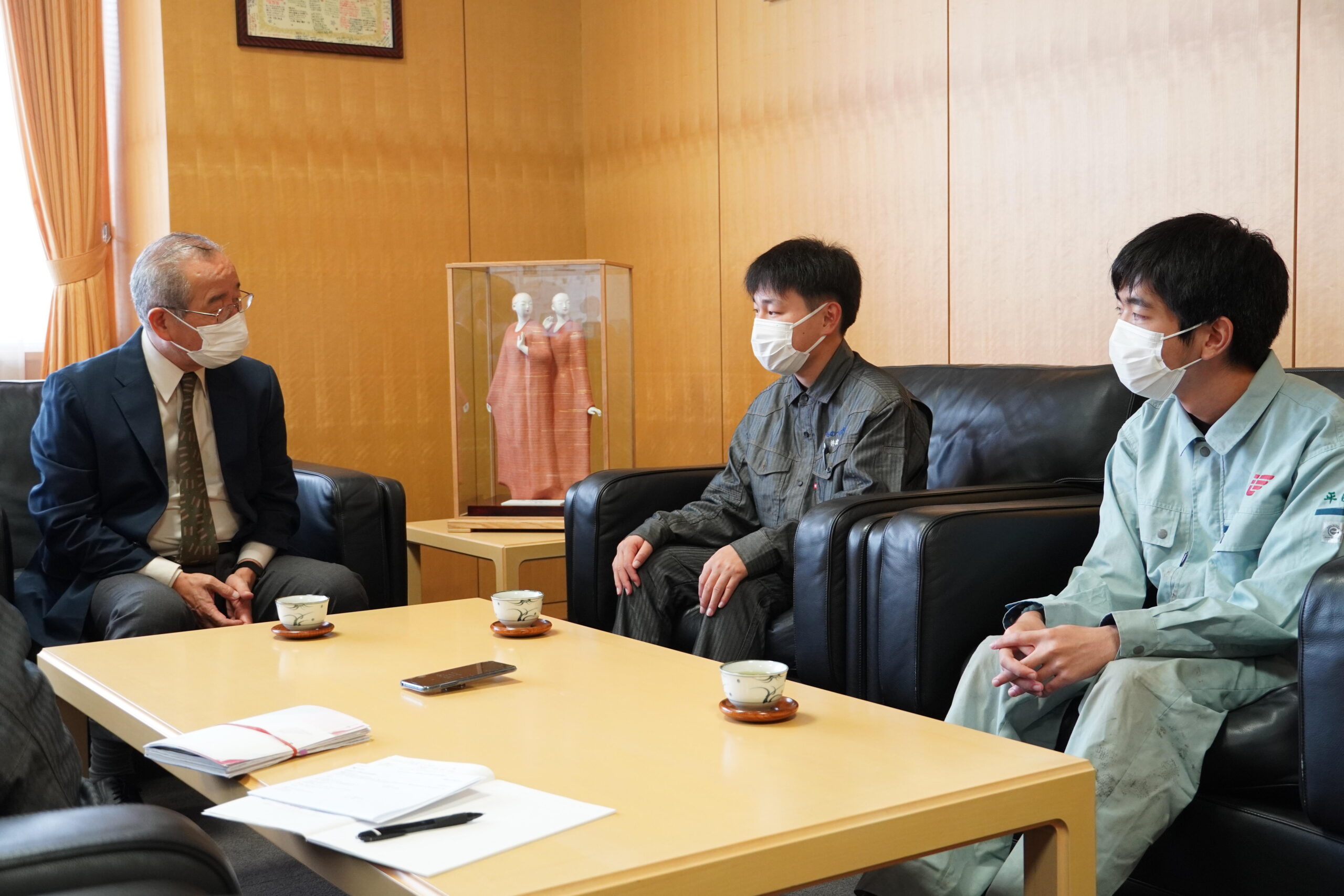 第16回若年者ものづくり競技大会入賞学生2名が大会報告のため、2021年9月9日にものつくり大学・赤松学長へ表敬訪問