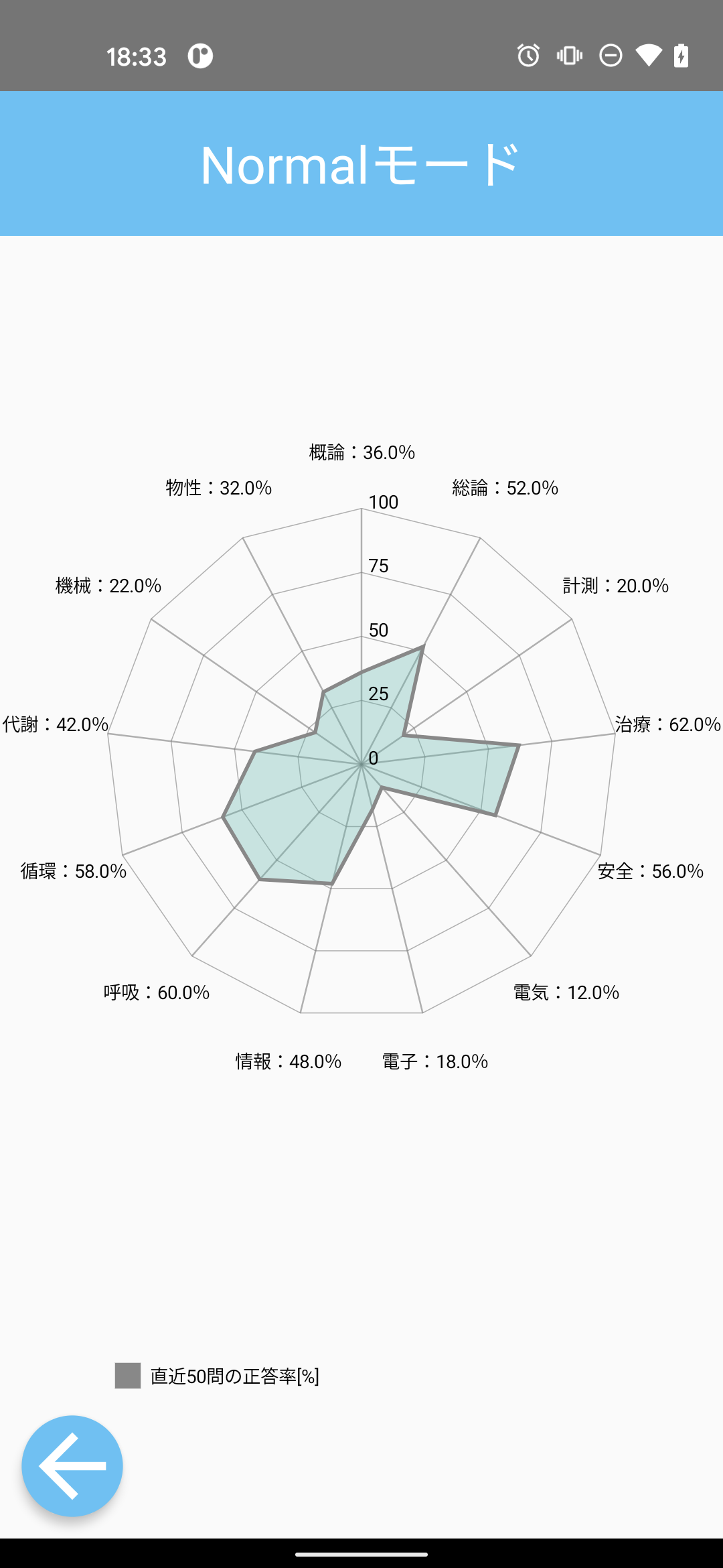 直近50問のデータで不得意分野が分かるようにグラフ化
