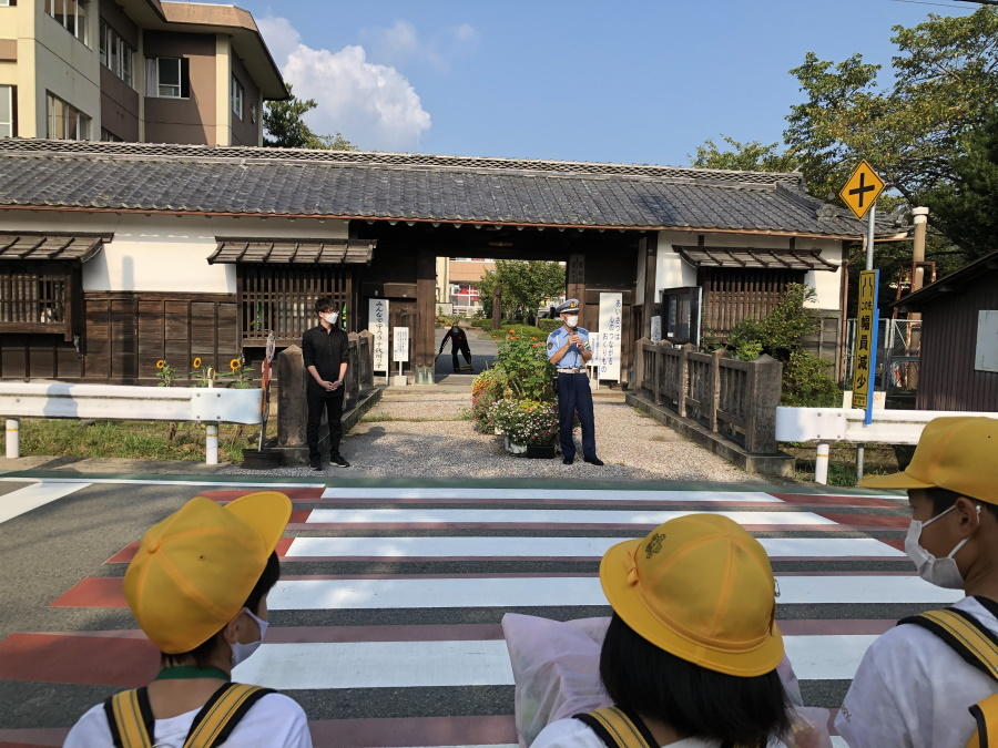 ・京都府下の横断歩道では初の試み学生提案のトリックアートを用いた横断歩道を導入小学校の始業式に合わせ渡り初め式を実施