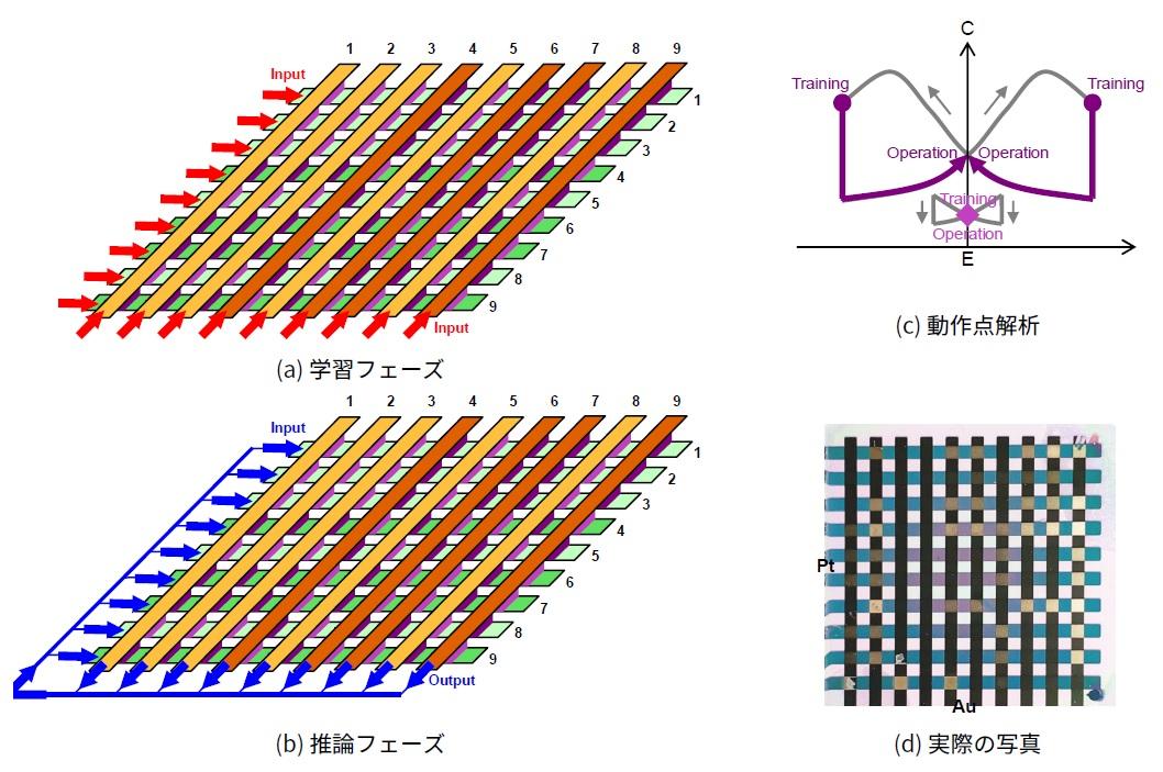 ・メムキャパシタと自律局所学習を用いるニューロモーフィックシステムを開発した。従来の人工知能と比べると、劇的なコンパクト化・低電力消費が期待できる。