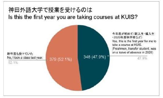 神田外語大学(千葉市美浜区/学長:宮内孝久)は、2021年度前期授業(オンライン・対面)に関して、第3週目終了時に学生アンケートを実施しました。本アンケートは、オンライン授業および対面授業に関する質問を用意し、外国語学部の全学生を対象に実施しました。727名の学生がアンケートに回答し、多くの学生がスムーズにオンライン授業に参加することができ、また対面授業においても9割以上の学生が満足していることが分かりました。