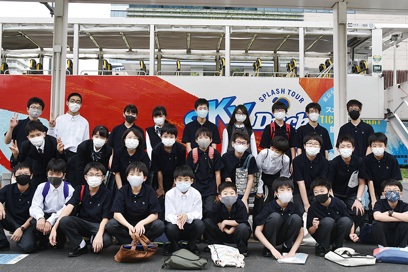 中学1年生では、現代の時代背景と豊洲地区についてマクロ的に捉え、世界を知るための土台作りを行います。具体的には、豊洲の街散策や企業訪問、水陸両用車を利用した湾岸エリアの海上視察、伝統文化体験学習により、その歴史や知識を体得します。その後、中学2年生で農村体験学習により日本文化への理解を深めたうえで、中学3年生では海外教育旅行に生徒全員で参加します。この一連の流れにより、生徒の世界への意識を広げ、真にグローバル社会へ適応した人材を育成します。