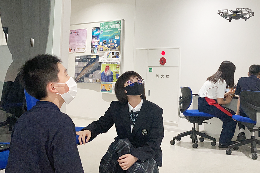 例えば、中学1年生は「遊びの中で想像する」をテーマにプログラムが構成されています。生徒が興味を持ちやすいよう、「ドラえもんの秘密道具を考える」を主題に、アイデア出しからディスカッション、発表、最終的にはアイデアを実現させる方法のひとつとして、プログラミングの手法を学びます。他にも、スクラッチプログラミングを使ってドローンを飛ばす体験などを通じ、アイデア具現化の方法を学びます。