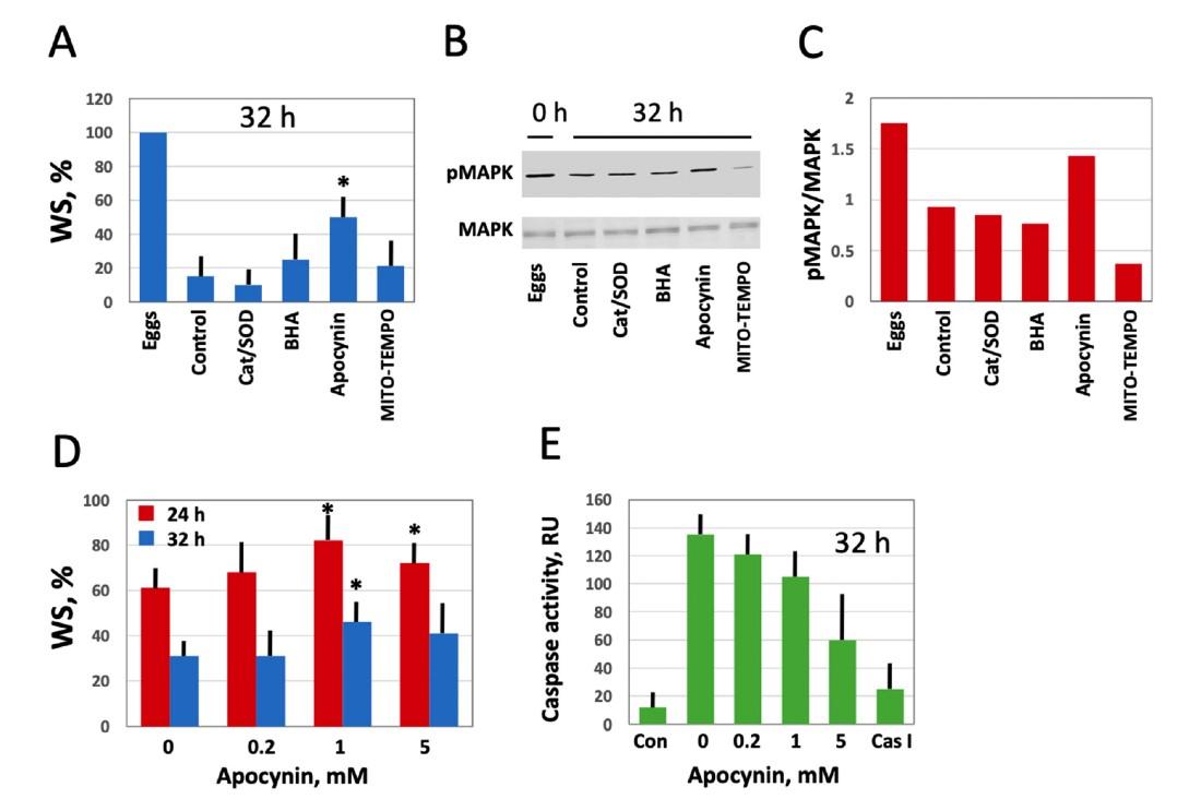 京都産業大学生命科学部の佐藤 賢一教授、トクマコフ アレクサンデル研究員(研究当時)らの共同研究グループは、老化したアフリカツメガエルの卵細胞内において生存率と機能性に影響を及ぼす活性酸素量を分析したところ、卵母細胞と卵を48時間培養すると、細胞内の活性酸素量が増加していることがわかった。さらに異なる活性酸素生成メカニズムを標的とした選択的な細胞透過性AOXを用いて実証すると、卵母細胞および卵における活性酸素の主な発生源は、細胞膜NADPHオキシダーゼであり、ミトコンドリアでの発生は細胞内の活性酸素量にあまり寄与しないことがわかった。また、NADPHオキシダーゼの選択的阻害剤である天然有機化合物アポサイニンを用いてNADPHオキシダーゼを阻害すると、卵母細胞におけるROS 活性酸素レベルが著しく低下し、正常な形態と機能が維持された。