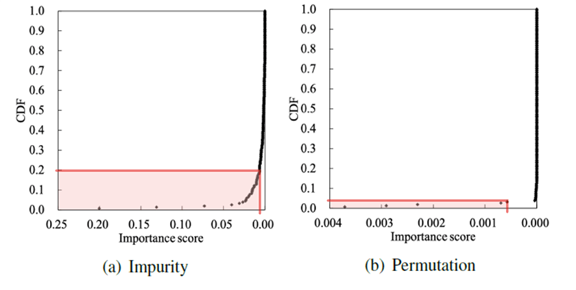 具体的には、300問ほどの設問項目を含むアンケートから特徴選択※によって、類似度の推定に対する重要度のスコアが高い上位10問の設問を抽出しました(図4)。設問数を減らしながらも、300問全てを使って推定したときと変わらない程度に、推定精度を高く保つことを可能にしました。