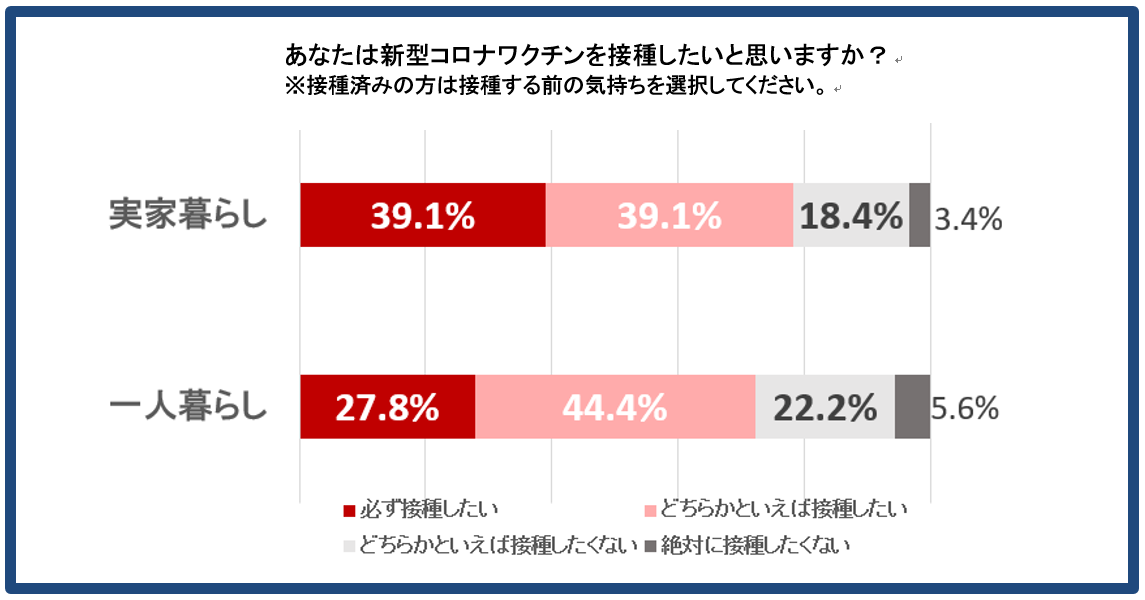 【実家暮らしの方が、一人暮らしよりもワクチン接種に積極的】(グラフ2参照)