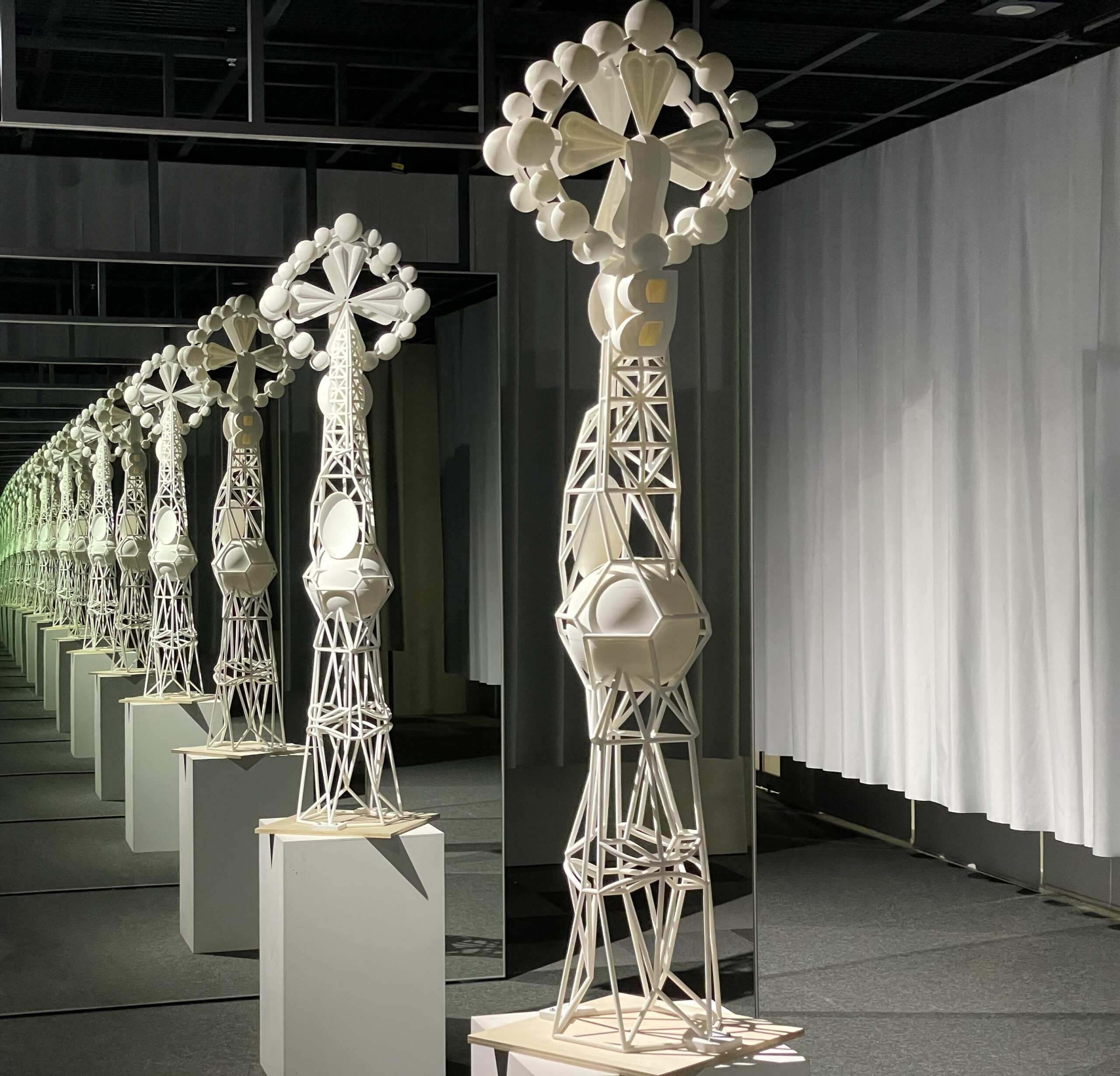 同企画展では、建築家アントニ・ガウディの代表作であるサグラダ・ファミリアの鐘楼を題材として、「視点と距離の関係」を体験できる作品を展示する。また、AIと人間の関係を視覚的に体感する彩色のワークショップも併設しており、ガウディが実践していた創作手法を実験検証することができる。