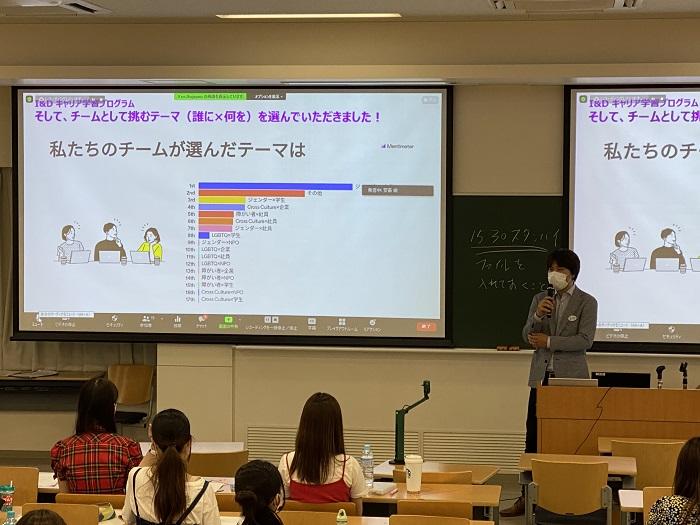 5月17日に同社から「インクルージョン&ダイバーシティ」へ注目が高まる背景やその構成要素、同社の具体的な取り組み事例について講義を受け、その上で「インクルージョン&ダイバーシティ」に関して個人や企業が取るべきアクションを提言するという課題が出された。その後1か月間、学生は10のグループに分かれて課題の発見から解決策の考案、事例の調査、提言のとりまとめ、プレゼンテーションの準備などを行った。