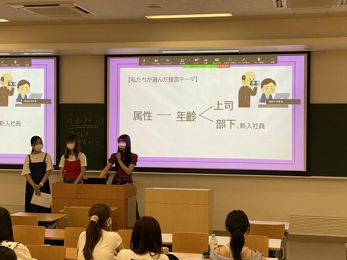 6月28日には提言発表会を開催し、10グループが提言を発表。白熱したプレゼンテーションが行われた。学生らは、「ジェネレーションギャップの改善はイノベーションの宝庫」「社員の健康は企業が守る!あったら嬉しい万能保健室」「生理は女性だけの問題じゃない」「採用におけるアンコンシャスバイアス」「寄り添おう社会~シングルマザーのリアルな声~」「子育て中の女性の社会復帰」など多岐にわたる内容について発表。その中から最優秀賞、優秀賞、学生賞が選出された。