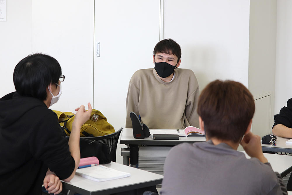 1年次キャリア科目のプロジェクト活動スキル入門の授業では、「無人島に一つだけ何を持っていくか」「おすすめのダイエット方法」などの身近な事柄をテーマに意見交換の練習を行います。イメージがしやすいこともあり、どのチームも各々自分の考えを伝えたり、相手に質問を投げかけるなど、活発に議論が交わされます。授業を通して、議論への抵抗感をなくし、多種多様な意見に耳を傾けることや、積極的な姿勢の大切さを知ることができます。