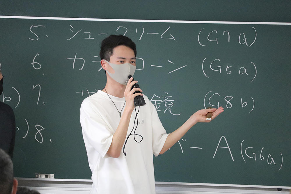 また、例年全体発表の場では、グループで1枚の模造紙に集まり書き込む形をとっていましたが、今年はコロナ禍の感染防止対策も踏まえ、BYOD(Bring Your Own Device)パソコンを活用して、Googleスライドでの共同作業を導入しました。