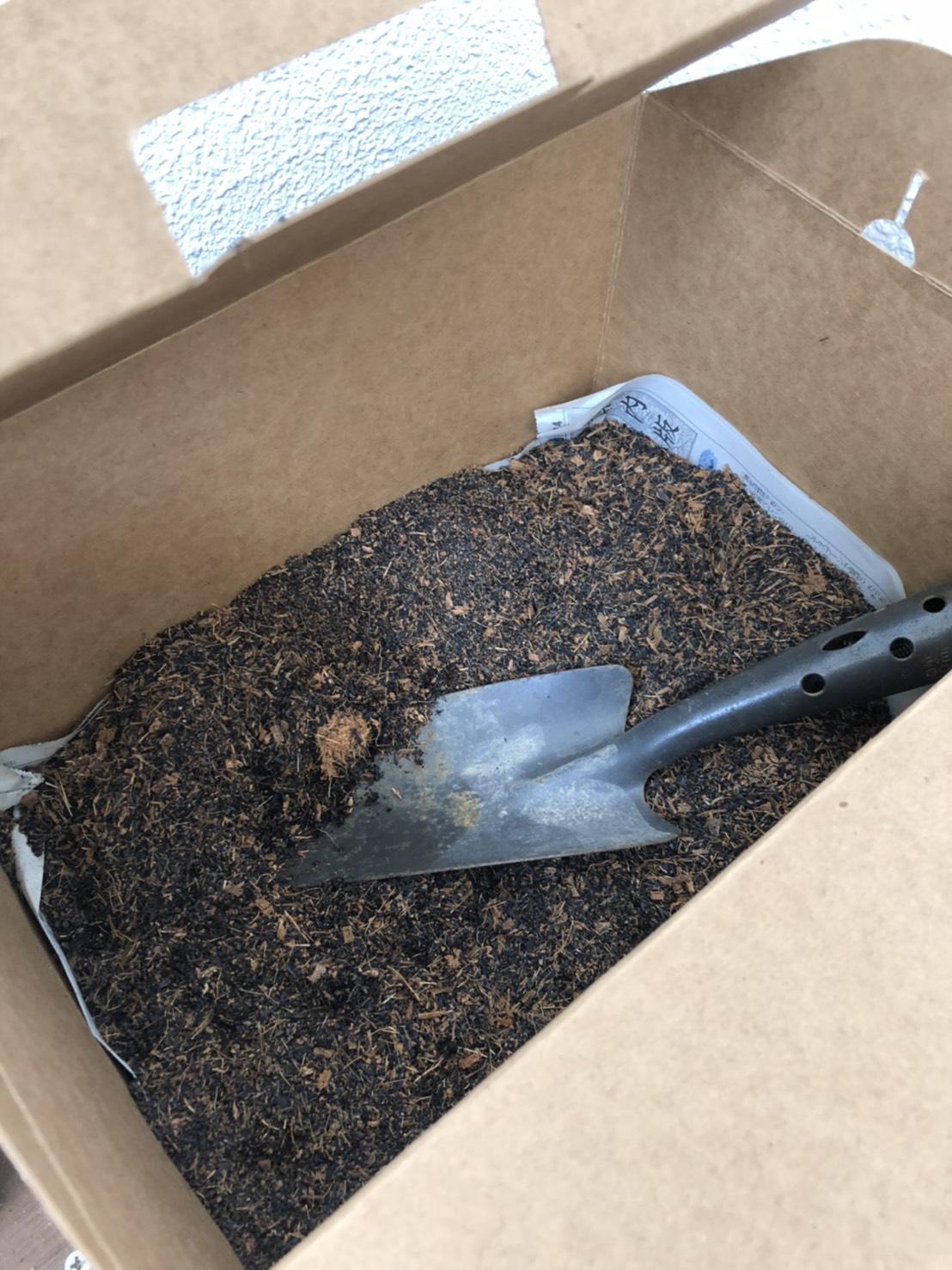 段ボール箱、コンポスト用の土、家庭菜園用の土、種(季節に合わせて選びます)