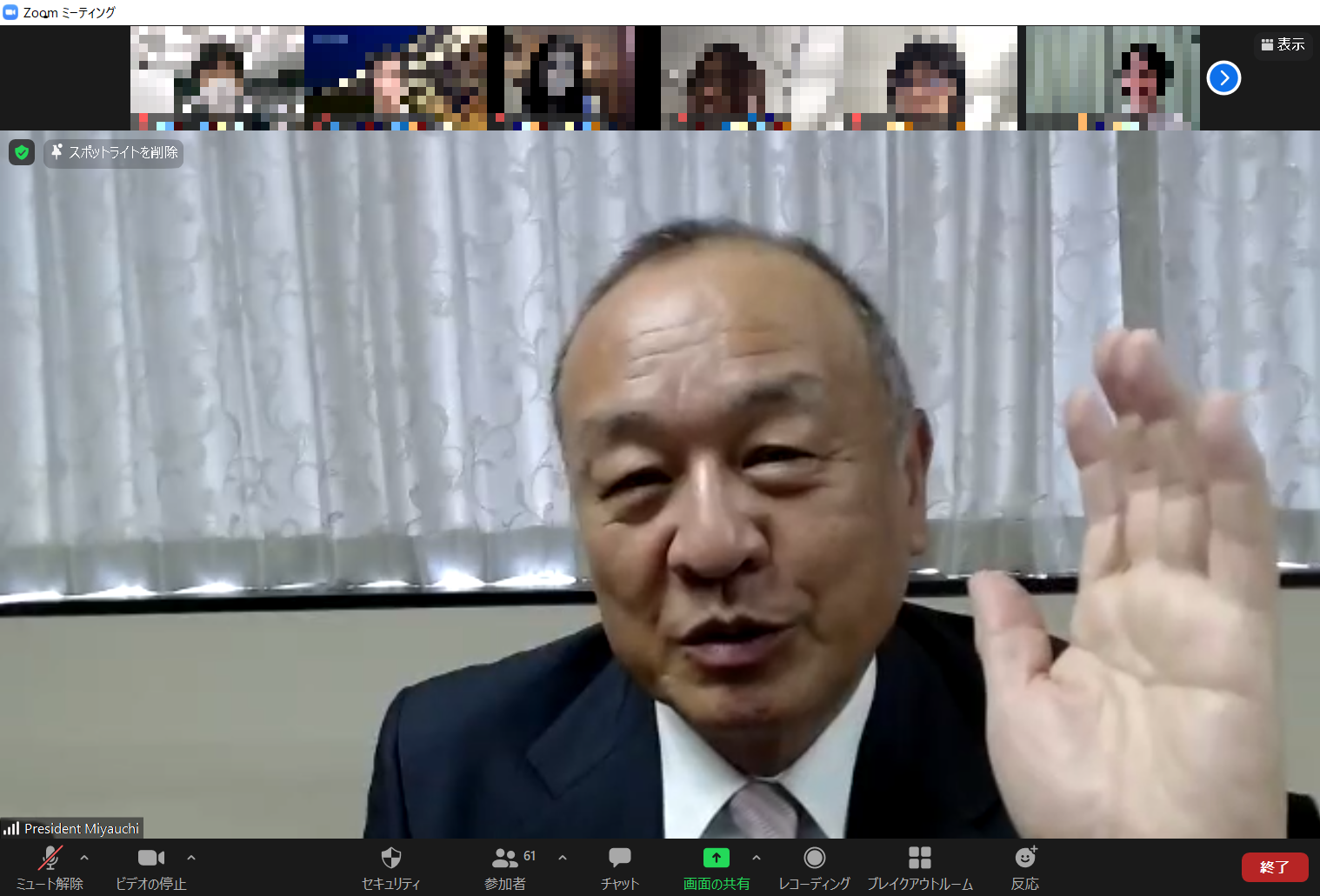 2021年度春学期は、留学生の日本入国が困難である中、10か国・地域より61名の同大学国際協定校の学生が受講しており、プログラム開始に先立ってキックオフセッションが開催されました。学長および留学生別科長より、コロナ禍においてもオンラインで日本語・日本文化を学ぼうとする海外協定校の学生に対し激励の言葉が送られ、それぞれの学生がプログラムに対する意気込みを共有しました。