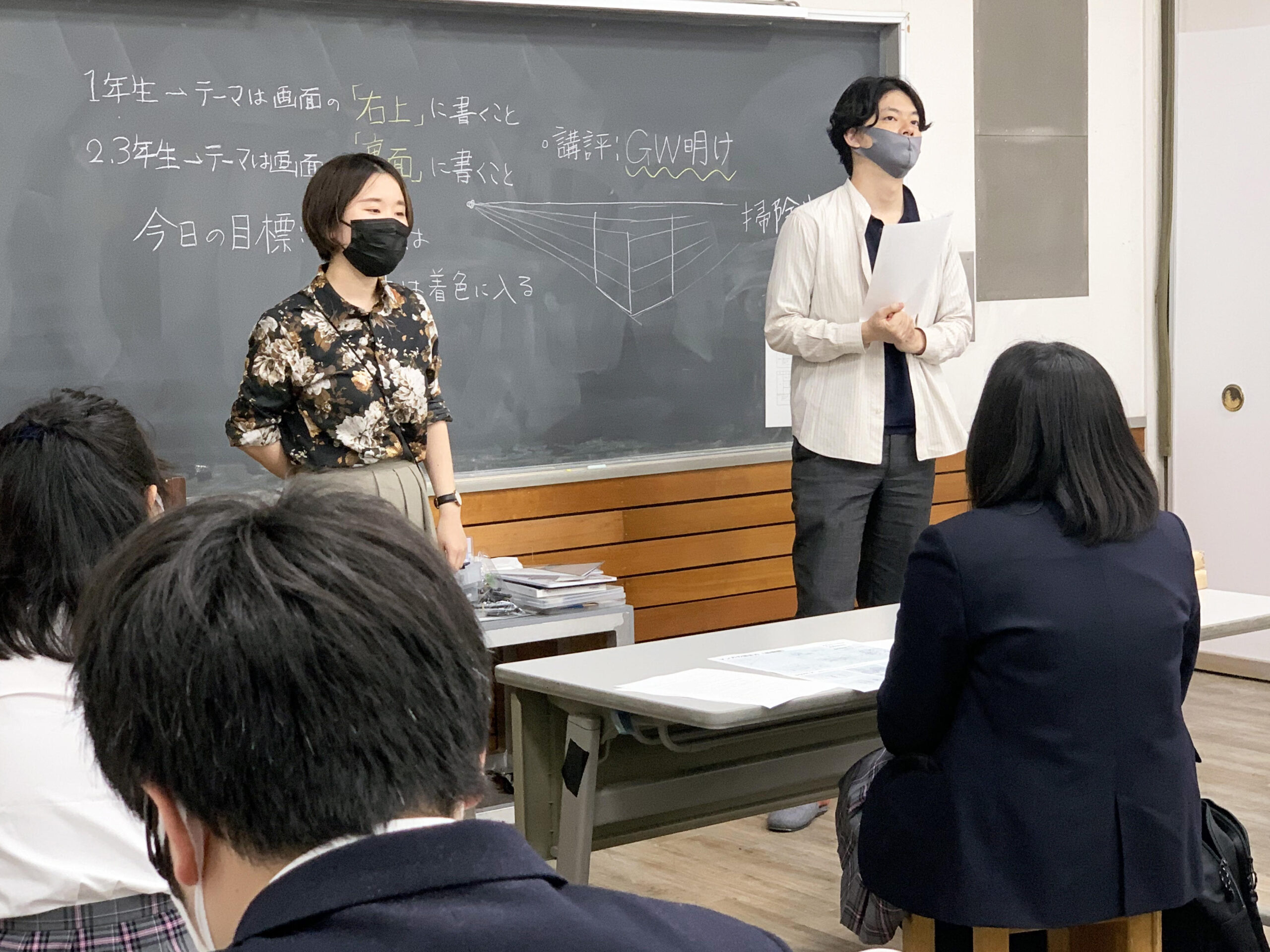 武蔵野学芸専門学校高等課程(東京都武蔵野市)では、美術教育の中で「Art thinking」と「Design thinking」を学ぶことにより、課題を自ら発見し、それを解決できる人材を育成している。このたび、同課程のイラストコースにおいて、少年サンデー(小学館)編集部の町田尚太氏および漫画家で同校の専門教員でもある茂木ヨモギ氏が講師を務め、「漫画のコマ割」と「漫画を描く上で大切なこと」をテーマとした漫画制作授業を行った。