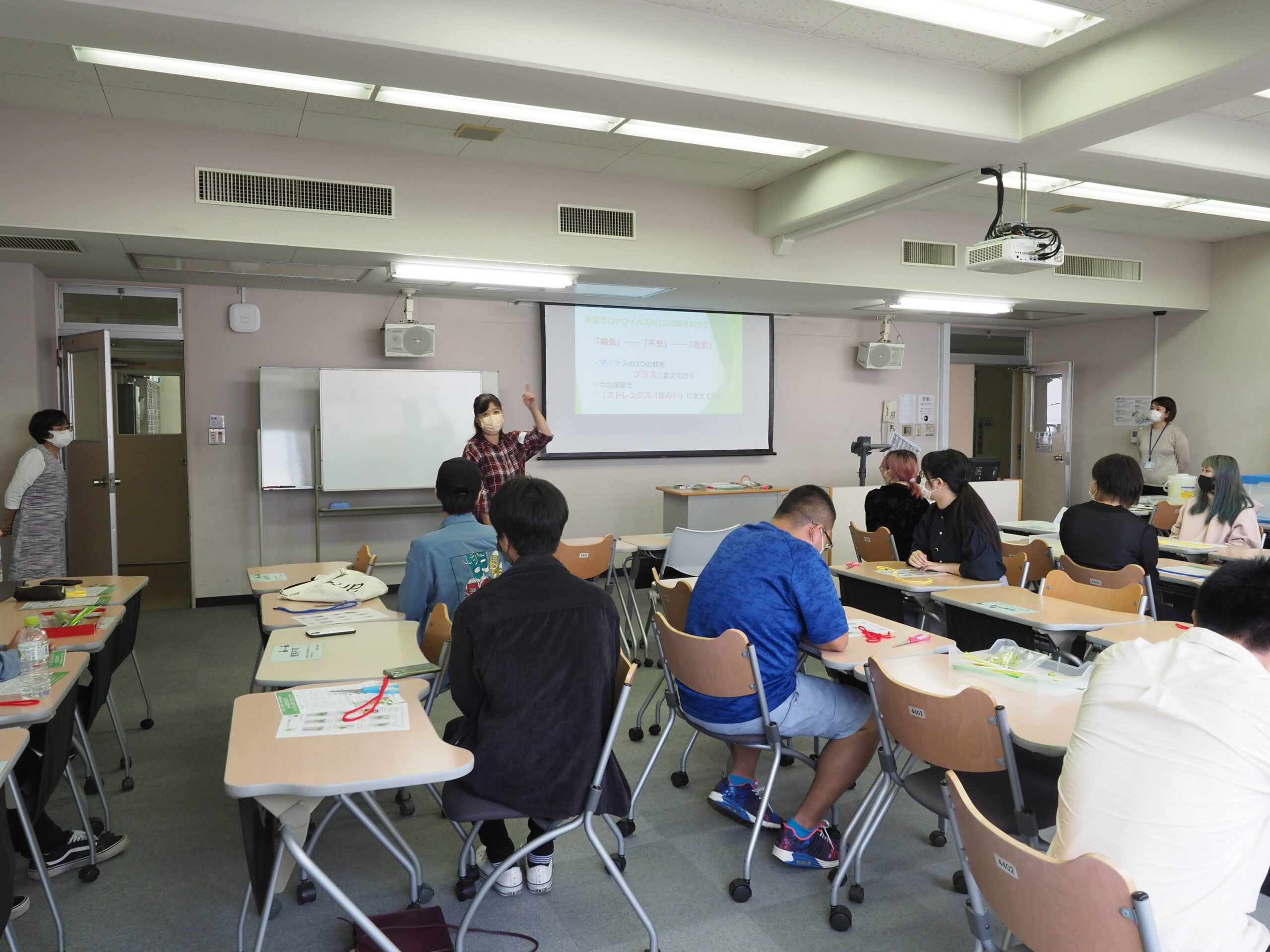 聖学院大学は2011年に発生した東日本大震災を契機とし、大学でのボランティア活動を支援するため「聖学院大学ボランティア活動支援センター」を発足しました。同センターでは被災地支援だけでなく、地域のボランティアのニーズと活動希望者のマッチングを行い、学生の学びと地域への貢献を目的に活動をしています。このたび、シトラスリボンプロジェクトinさいたまとの連携の中でリボン製作会が実現しました。第一回目となる5月17日(月)には講師として上尾市でボランティア活動を推進する市川富代子氏と安藤由美氏を講師に迎え、学生・職員約20名がリボンを製作しました。プロジェクトの趣旨説明を通して、コロナ禍にあって感染者や医療従事者への差別・偏見を乗り越えることの大切さを学んだ後、「地域・家庭・職場(学校)」を象徴する3つの輪を丁寧に結んでいきました。完成したリボンは身につけたり、贈りあったり、SNSでシェアすることで偏見のない社会への願いを広げていきます。第二回目は5月31日(月)に実施予定です。