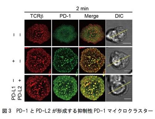 東京医科大学(学長:林由起子/東京都新宿区)免疫学分野 横須賀忠主任教授、大学院生竹原朋宏(慶應義塾大学呼吸器内科)、東京医科歯科大学分子免疫学分野 東みゆき教授を中心とする研究チームは、免疫チェックポイント分子PD-1とそのリガンドPD-L2が結合し、がん特異的T細胞を抑制する分子の集合体(マイクロクラスター)を作る現象を、世界で初めて可視化することに成功しました。
