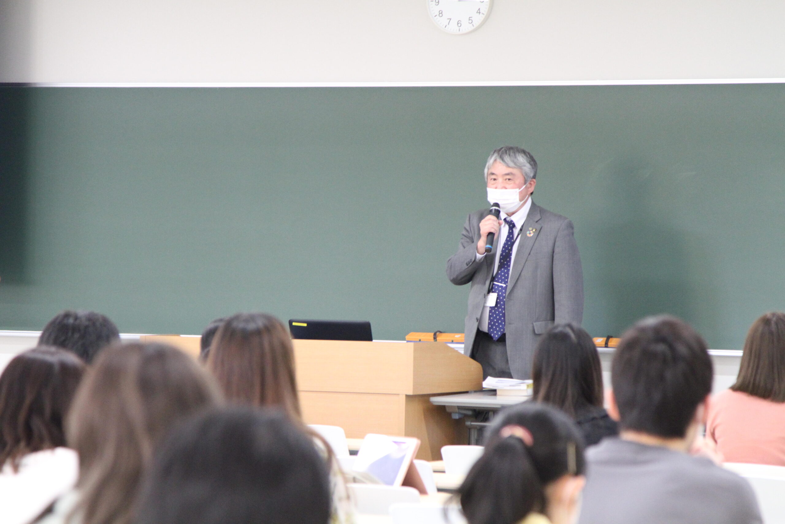学生たちは普段の講義では聞くことができない経営の現場の話に関心を示し、真剣な表情で受講していた。