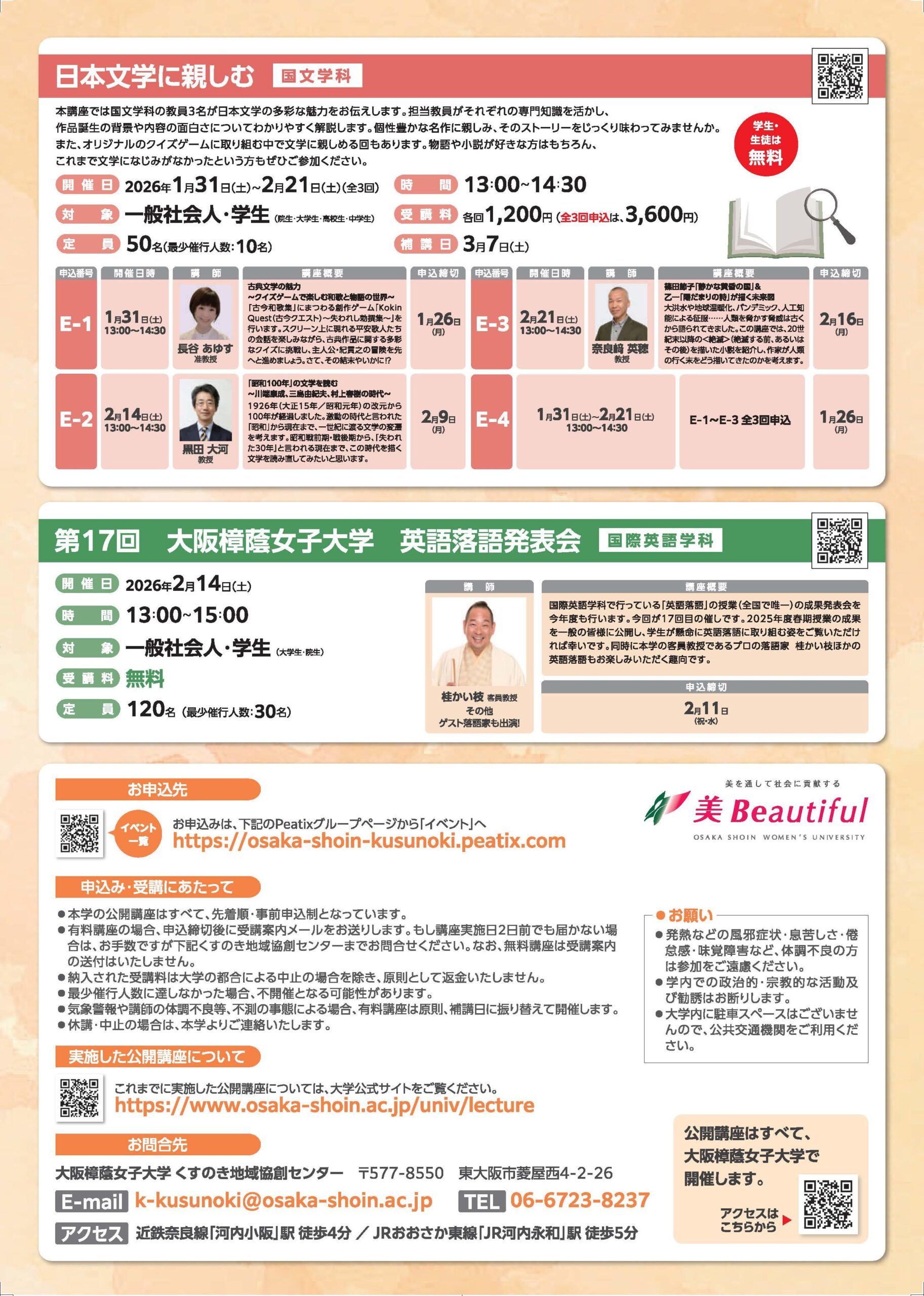 【大阪樟蔭女子大学】令和7年度秋期公開講座のご案内