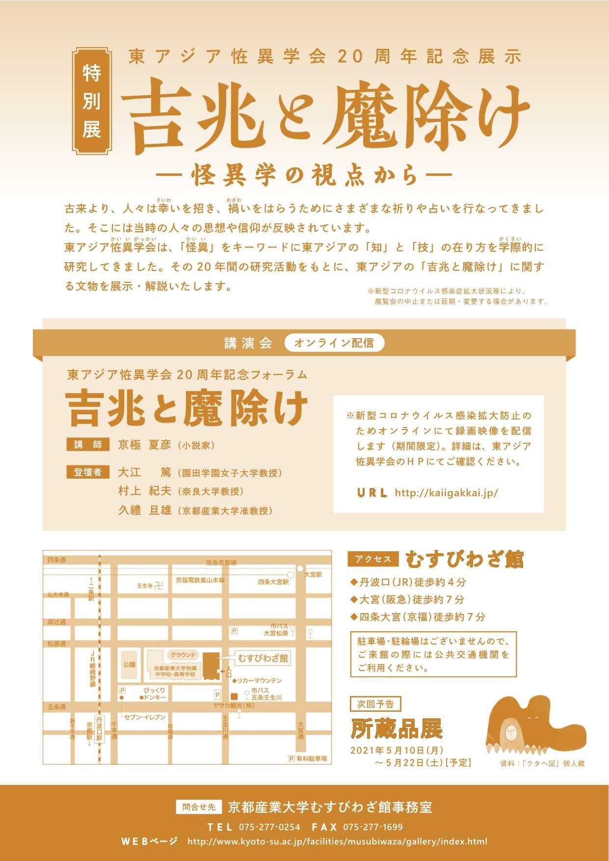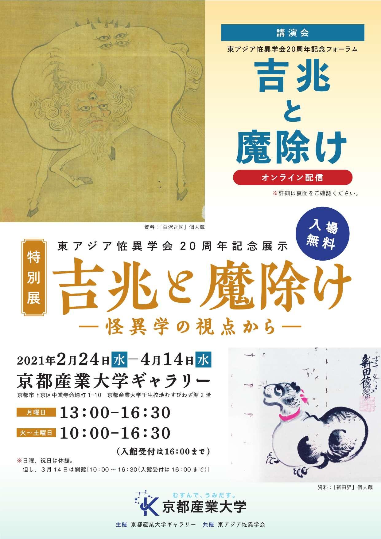 また2021年3月7日(日)に、「東アジア恠異学会20周年記念フォーラム 吉兆と魔除け」をオンライン配信で行った。
