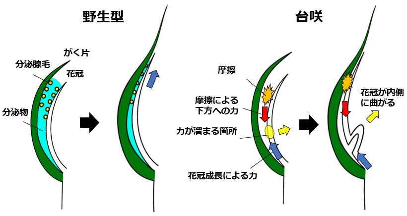 花器官表面にあるミクロ構造「分泌腺毛」が、器官どうしの摩擦を軽減することで、狭いつぼみの中でも花びらが伸長できることが分かった。この仕組みを応用し、観賞用の花の形を自在に制御する園芸技術につながる可能性がある。