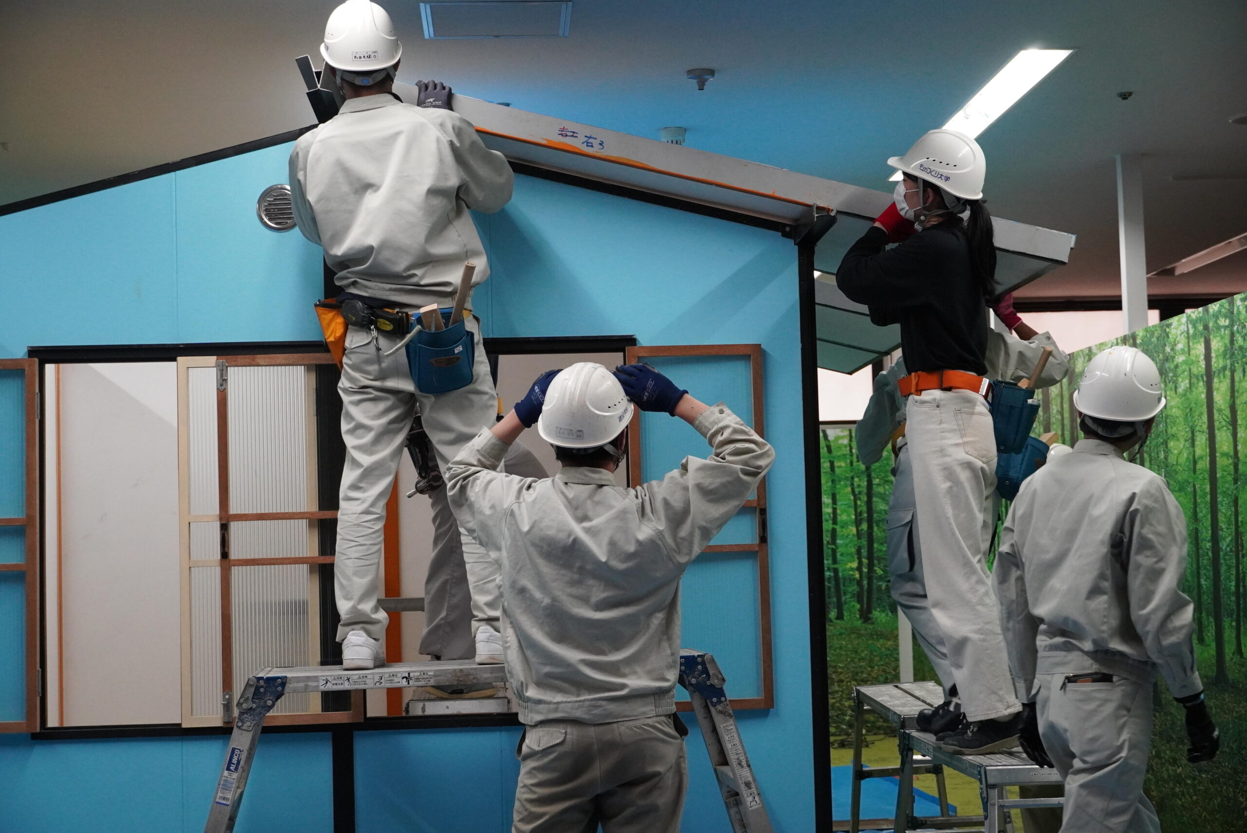開学20周年を迎えたものつくり大学(埼玉県行田市)建設学科の三原研究室の学生らが、プレハブ住宅の原点「ミゼットハウス」を卒業研究・設計・制作で復元。ロイヤルホテル能登(石川県羽咋郡)にて、学生が組み立てて寄贈