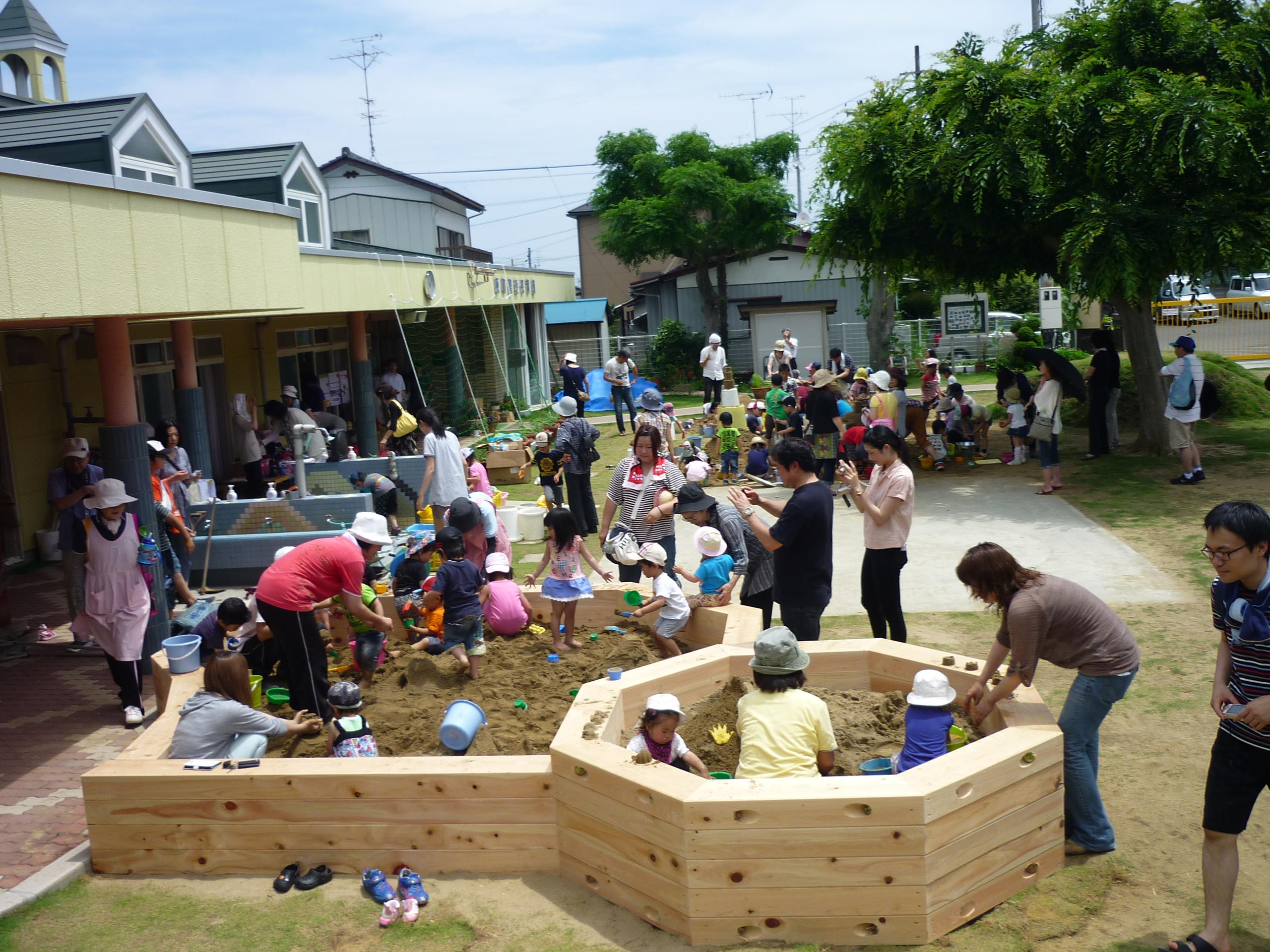特に園庭の砂場の砂が放射能汚染で使用できなくなり、山形県の砂に入れ替えるプロジェクトでは、京都府や滋賀県にある保育園の協力を得て砂の放射線量の比較を行い、10トンもの砂の安全を科学的に立証しました。