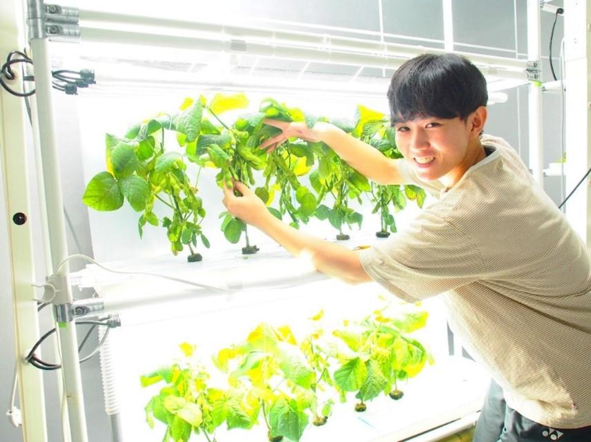 東京大学大学院農学生命科学研究科修士課程の高野智京さん(研究当時)、若林侑助教、矢守航准教授、および法政大学生命科学部の佐野俊夫教授らの研究グループは、人工光型植物工場において世界で初めてエダマメの安定生産に成功しました(図1)。