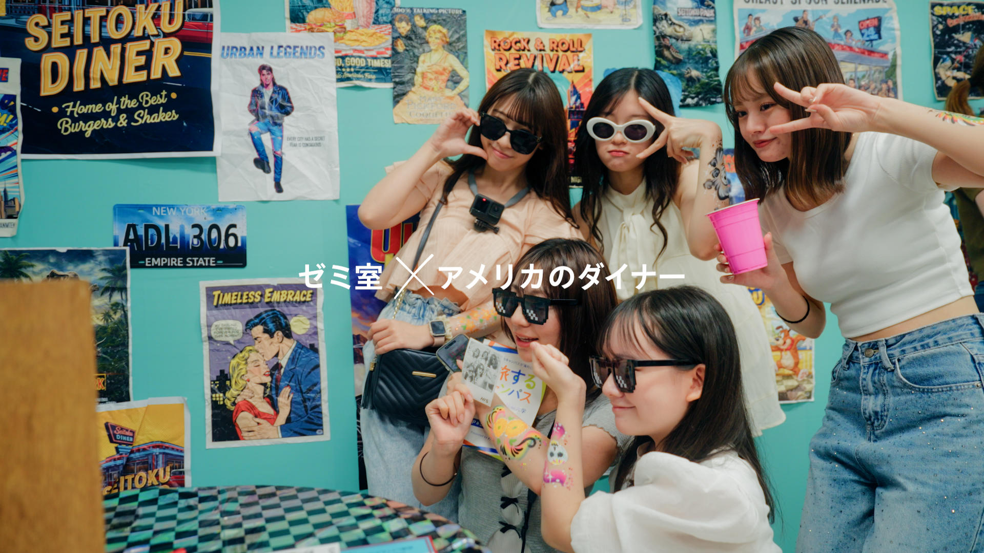 最終的に、アメリカへの留学経験を活かした国際学部3年生による「アメリカのダイナー体験」が採用され、撮影本番間際まで教室の装飾を進めるなど、細部までこだわった企画・演出が完成、CM制作に大きく貢献しました。