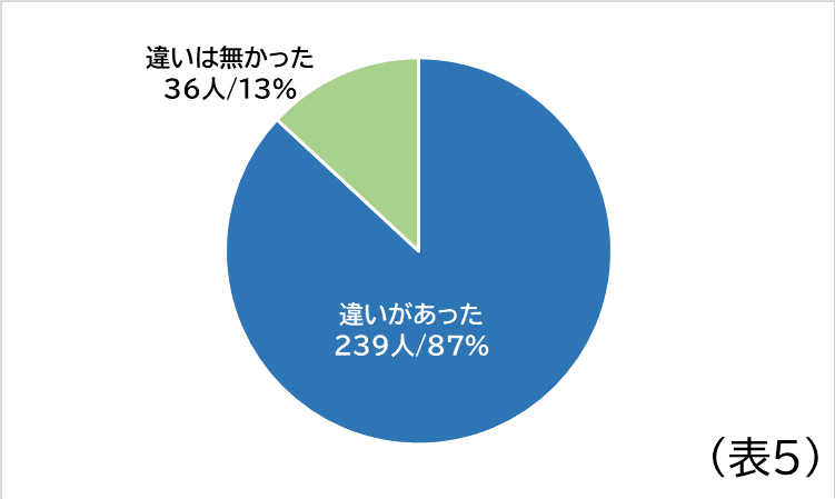 3-3. オンラインと対面でのプレゼンテーションの仕方における違いの有無(表5参照)