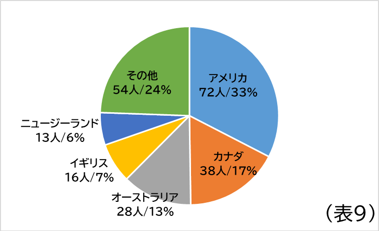 5-3. 留学経験者の留学先トップ5(表9参照)※2020年調査時点