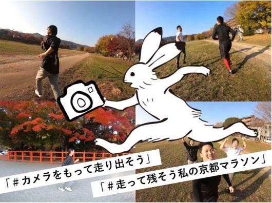 ランナー自身が走っている姿を動画撮影(30秒以内)し、SNSに投稿する企画。楽しく走る様子を共有することにより、一体感を生み出す。投稿された動画は、ゼミ生の審査により優秀賞3人を決定し、京都マラソンオリジナルグッズをプレゼントする。