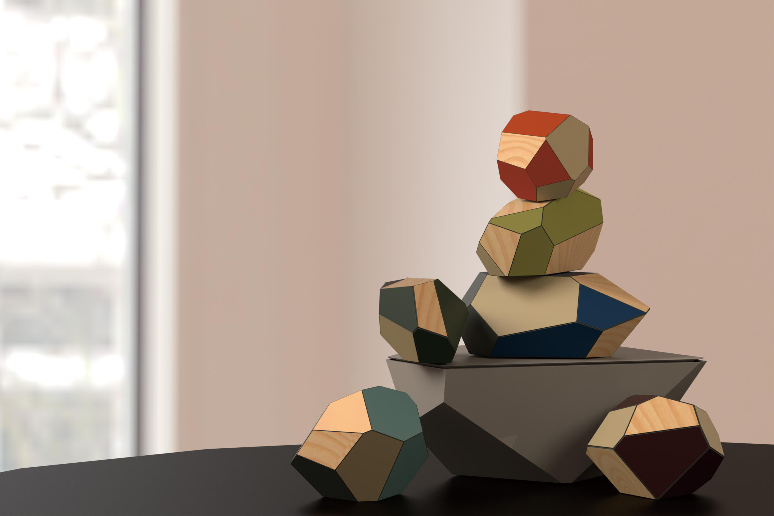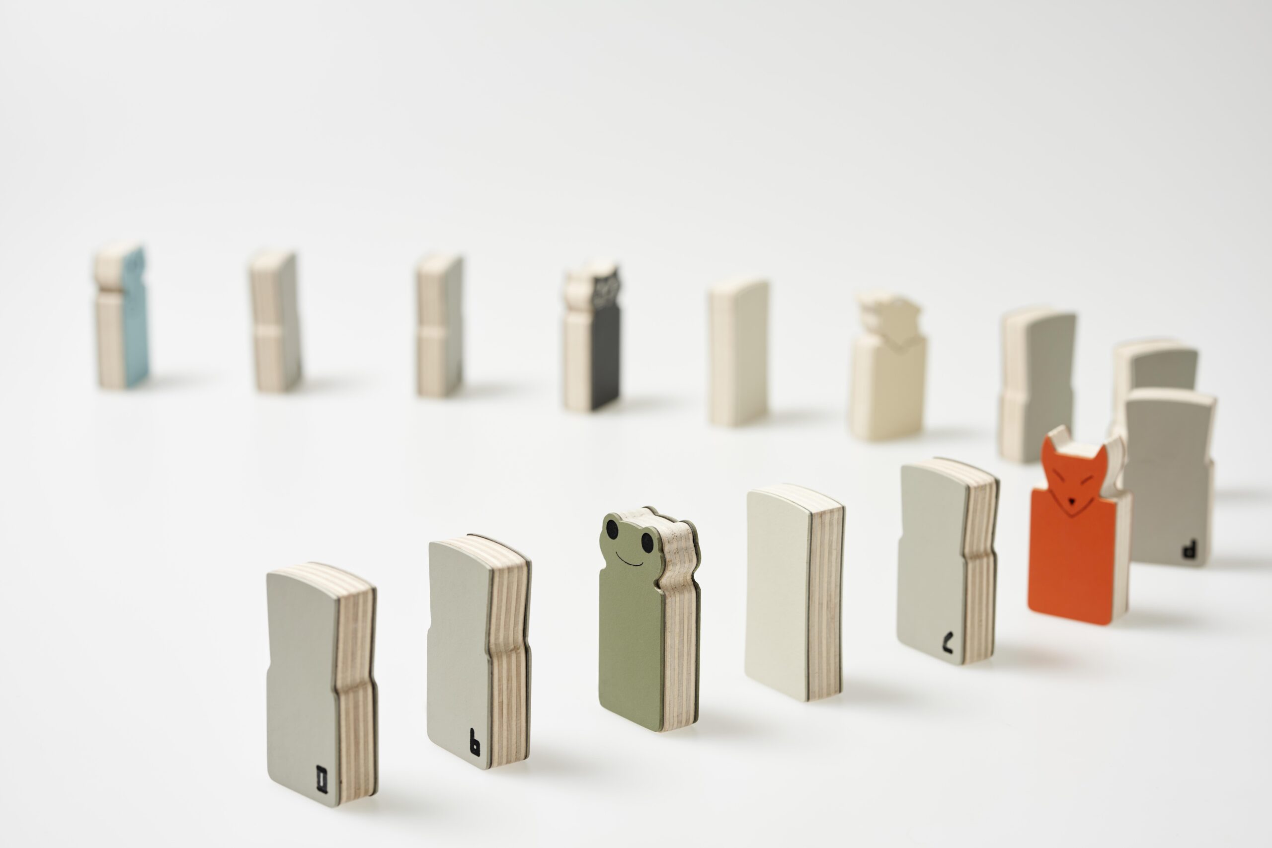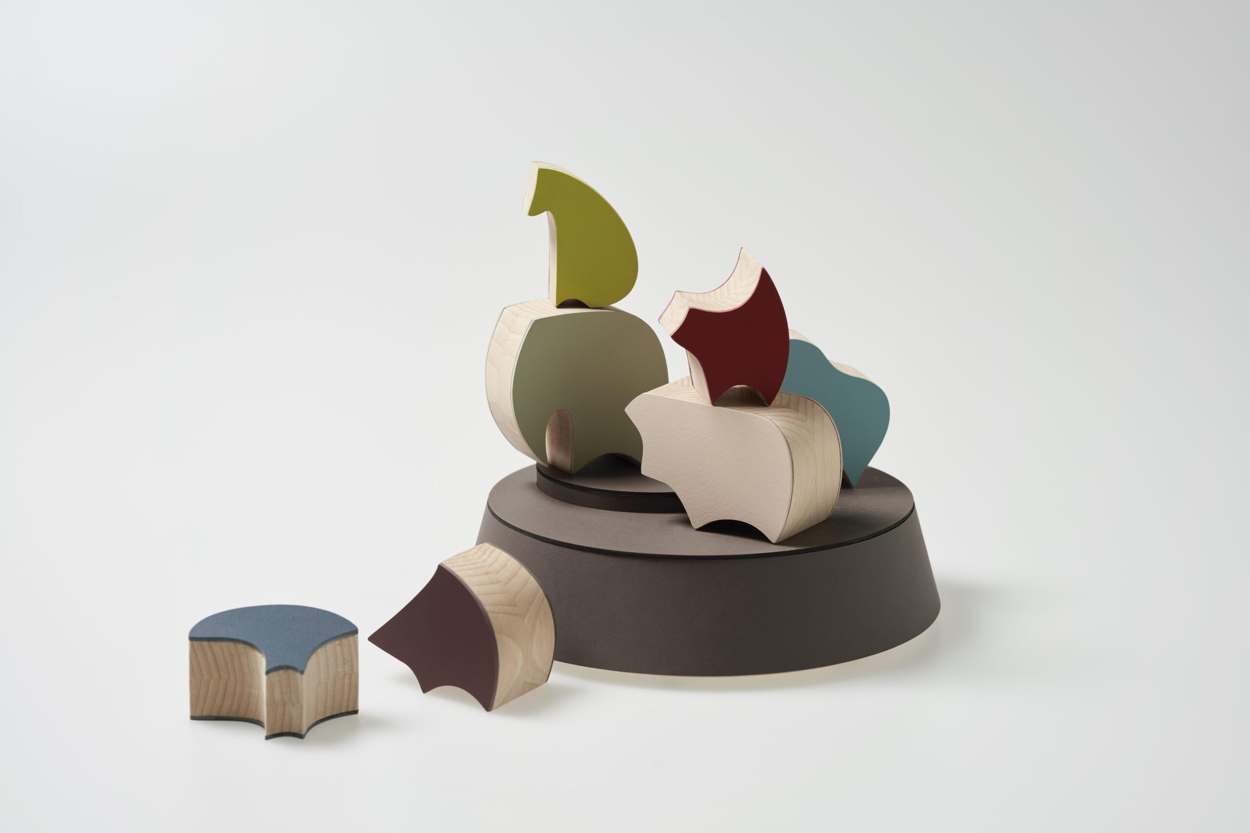 動物のかたちをした積木をベースの上に積み重ねて遊ぶバランスゲーム《LINOMAL》では、抗菌性やカラーバリエーションの豊かさなどリノリウム従来の魅⼒を活かすことに加え、積木を積むことで「ヒーン」「ニャー」など動物の鳴き声が聞こえるインタラクティブな仕掛けが施されています。ほかにも、倒れることでメロディを奏でるドミノ《ottoy》や、マットに足を踏みこむことで自然のサウンドが流れる枯山水をイメージしたインテリアオブジェ《空山遠潤》などが登場します。