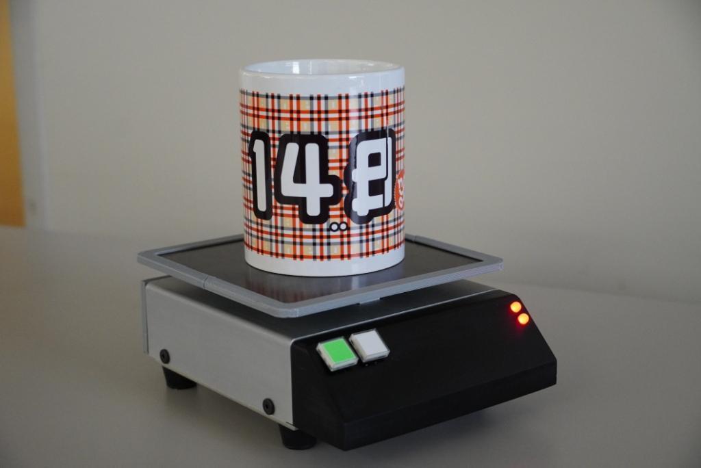 内容:寝坊等防止のための検知型アラーム(マグカップを取るとスマホのアラームが止まる等)