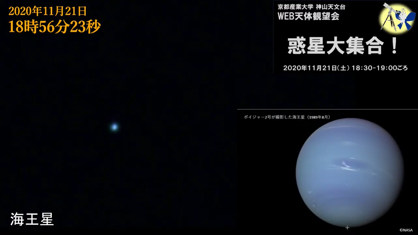 京都産業大学神山天文台では、自宅などに居ながら天文学や宇宙に触れられる機会を作ることを目的にWEB天体観望会を開催し、神山天文台で撮影した天体の動画を解説付きで配信している。今回は『惑星大集合』と題し、この時期に見られる火星、天王星、海王星などの映像をライブ配信した。