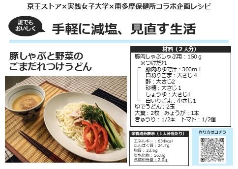 実践女子大学×南多摩保健所×京王ストア。管理栄養士専攻の学生が減塩レシピを開発し、16日から都内4店舗で掲示や配布。国の施策に一役買います!