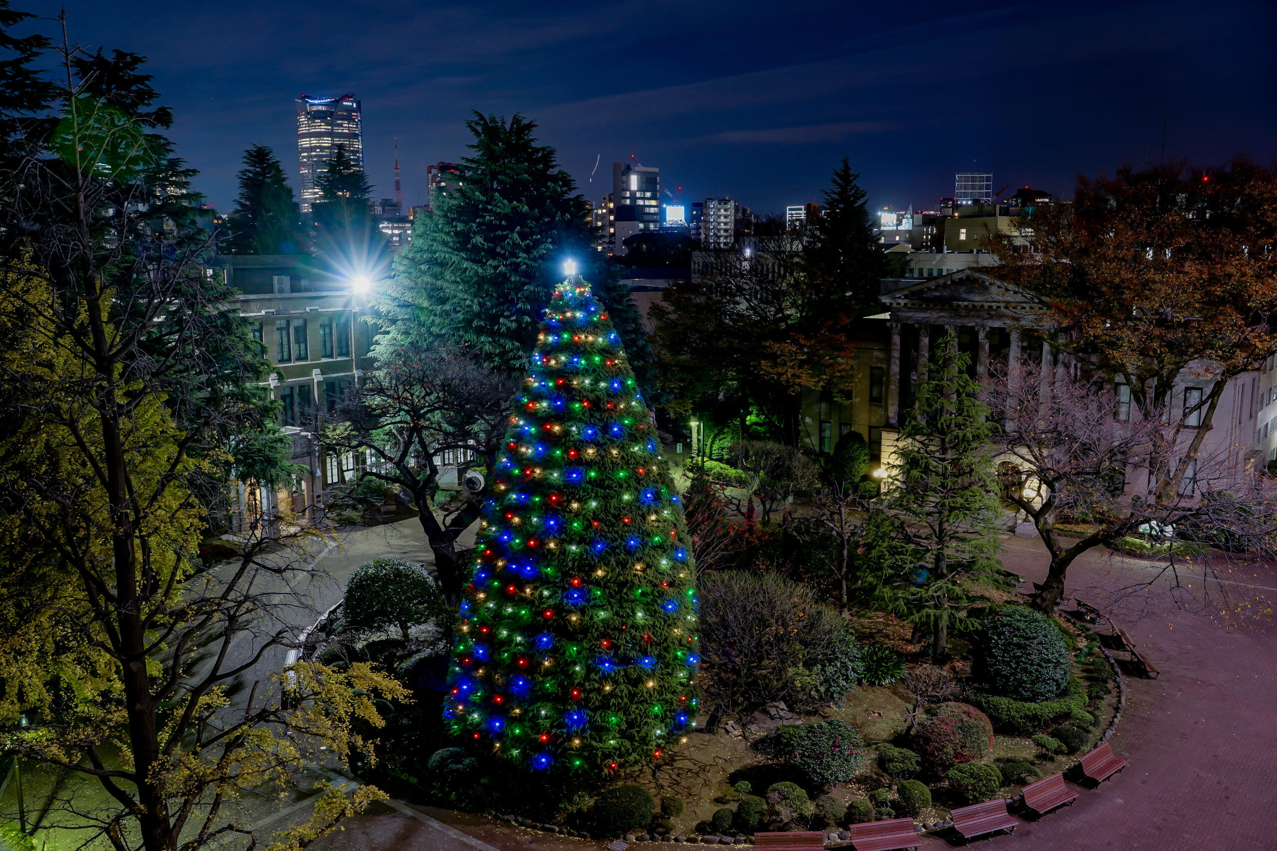 クリスマス・ツリーの点火期間は両キャンパスとも2021年1月5日(火)まで。点灯時間は青山キャンパスは16時から22時30分、相模原キャンパスは16時30分から24時30分となっております。一般の方の入構はご遠慮いただいておりますが、青山キャンパスのクリスマス・ツリーは青山通り沿い、正門の外からご覧いただけます。相模原キャンパスのクリスマス・ツリーはJR横浜線の車窓からご覧いただけます。