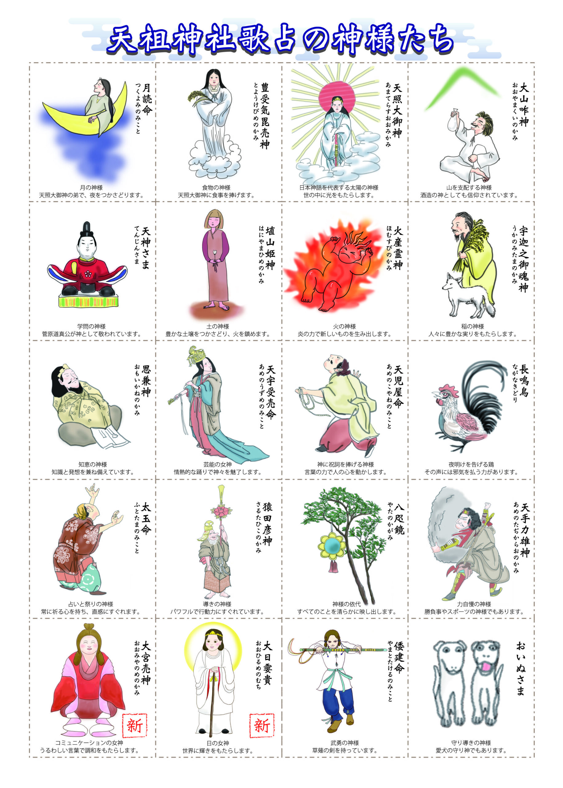今回、歌占に新しく加わる神様は天祖神社の御末社・伊勢神社の御祭神「大日孁貴(おおひるめのむち)」と豊敬稲荷神社の御祭神「大宮売神(おおみやのめのかみ)」とです。12月26日(土)には、今回新たにつくった歌占を神様に奉納する「歌占奉納祭」を天祖神社で執り行う予定です。