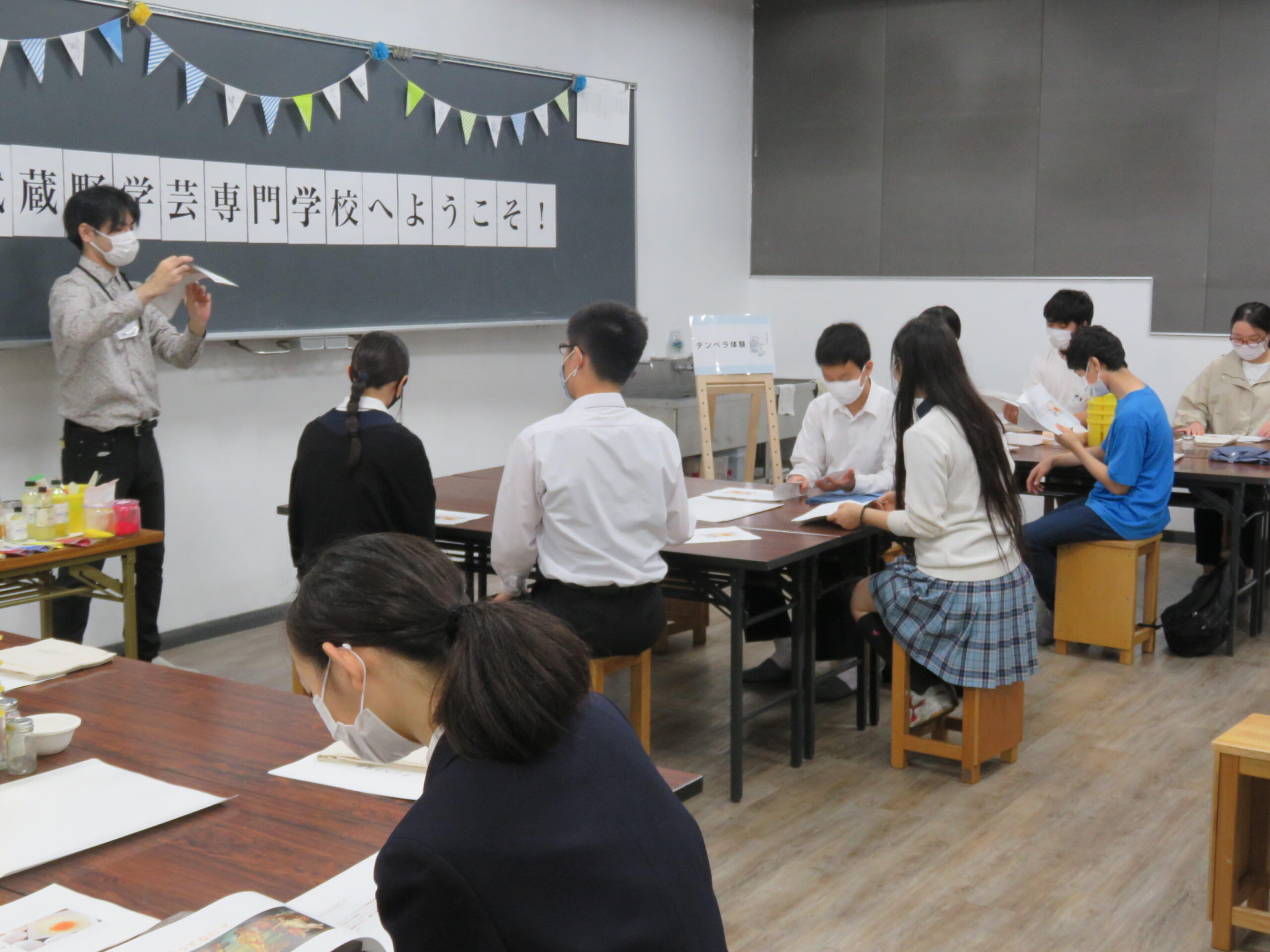 武蔵野学芸専門学校校長の挨拶をはじめとした学校説明会、また実技体験では在校生、卒業生が制作のサポートやアドバイスしてくれます。そして、在校生からは学校生活の様子などを聞くことができる体験イベントです。