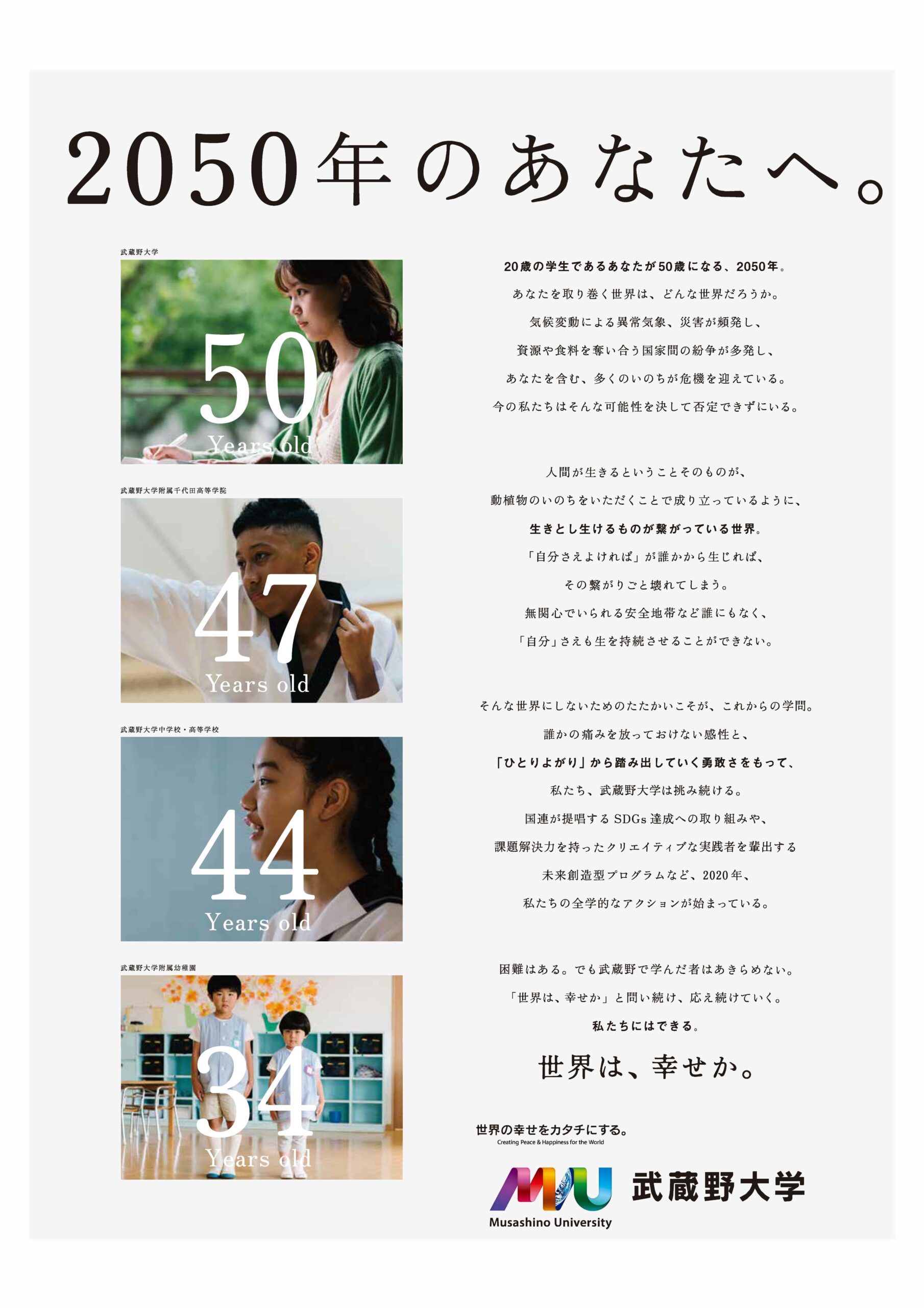 特設サイト「2050年のあなたへ。」: https://www.musashino-u.ac.jp/guide/profile/brand/2050/