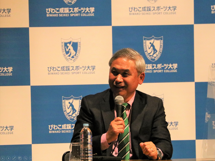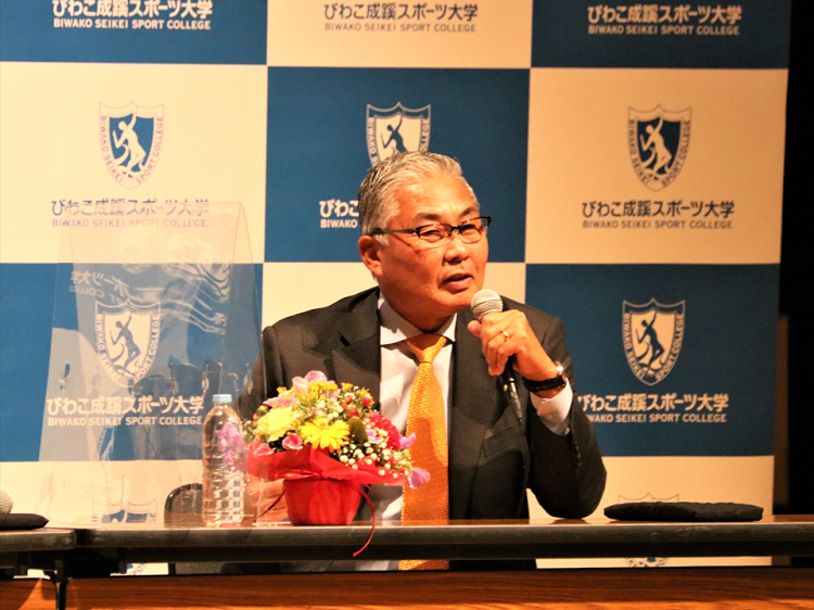 びわこ成蹊スポーツ大学(滋賀県大津市)は11月7日、大津市民会館にて特別講演会「スポーツが未来を変える」を開催した。このイベントは1年次生の授業「成蹊スポーツ基礎演習」の一環で、スポーツの多様性と多元性についての知識の幅を広げ、その理解をより深めることが目的。また、新型コロナウイルスにより大学の行事等が中止となり、本来のキャンパスライフを送ることができていない1年次生のために企画されたものでもあった。