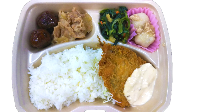 ライスには農薬や化学肥料の使用量を通常の5割以下に削減した滋賀県産コシヒカリ(環境こだわり農産物)を使用。おかずは日替わりで、ハンバーグやアジフライ、チキン南蛮、豚カツなどをメインに据え、ナスや里芋、チンゲン菜、インゲンなど、野菜もバランスよく配置。これが100円で食べられるというんですから、学生たちもきっと満足してくれるに違いなし!という自信メニューとなっています。