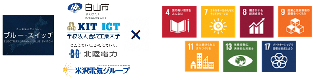 ・白山市、金沢工業大学、日産自動車、北陸電力、米沢電気グループは、平常時も電気自動車(EV)の普及促進を行うほか、市のイベントで使用する電力を電気自動車(EV)から供給することで、『電気自動車は「走る蓄電池」』としての活用を市民へ積極的にアピールするなど、SDGsの認知度向上及び環境・防災意識向上を目指す。また、市のこどもたちの環境意識向上のための教育に関しても連携を行う。
