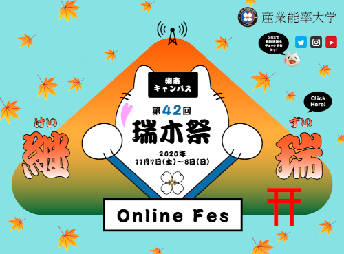 産業能率大学(本部:東京都世田谷区)はオンラインでの学園祭を11月7日(土)、8日(日)に開催いたします。学園祭は経営学部(自由が丘キャンパス:世田谷区)、情報マネジメント学部(湘南キャンパス:伊勢原市)それぞれの学部ごとで開催し、ギネス世界記録に挑戦や、各ゼミの研究発表、オンラインパフォーマンス、映画製作会社やFM局とタイアップしたスペシャルイベントをLIVE・動画配信にてお届けいたします。一般の方の参加もお待ちしています。