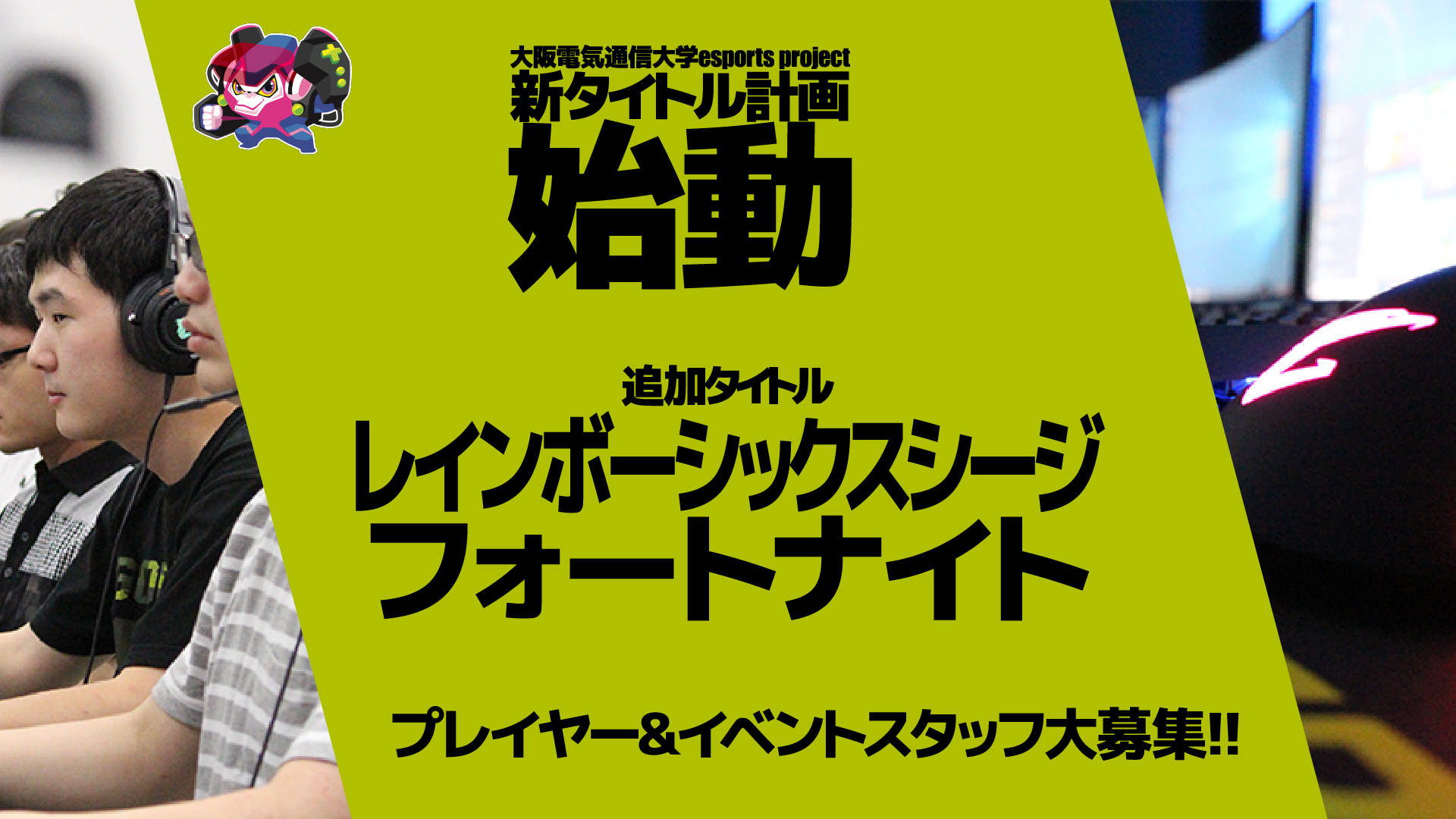 また、esports projectは、追加タイトルとして「レインボーシックス シージ」と「フォートナイト」の新部門を設立しました。学生に大人気の同タイトルは、大学公認団体としては日本初採用です。