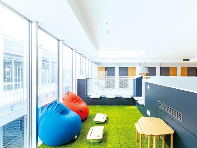 RS+S造、地上4階建、延べ床面積は6,065m2。低層階には3つの多目的スタジオ・多目的和室や課外活動の部室などをテーマ別に配置。1階から4階までの吹き抜け部分には複数の階段を配置し、踊り場など周辺部分には少人数で作業や会話ができる「キッチンポット」や「人工芝ポット」「畳の小上がりポット」などのオープンな出会いのスペースを全館に約20個設置しています。