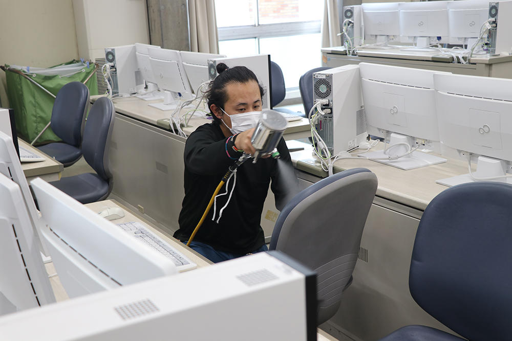 千葉商科大学(学長:原科幸彦)では、新型コロナウイルス感染予防に向けて、キャンパス内施設に持続性のある抗ウイルス・抗菌作用剤ヘルスブライトエボリューションの塗布作業を行った。秋学期から一部の授業で面接授業(対面・通学)の再開に向け、安心で安全な学生生活を送れるようにしたもの。