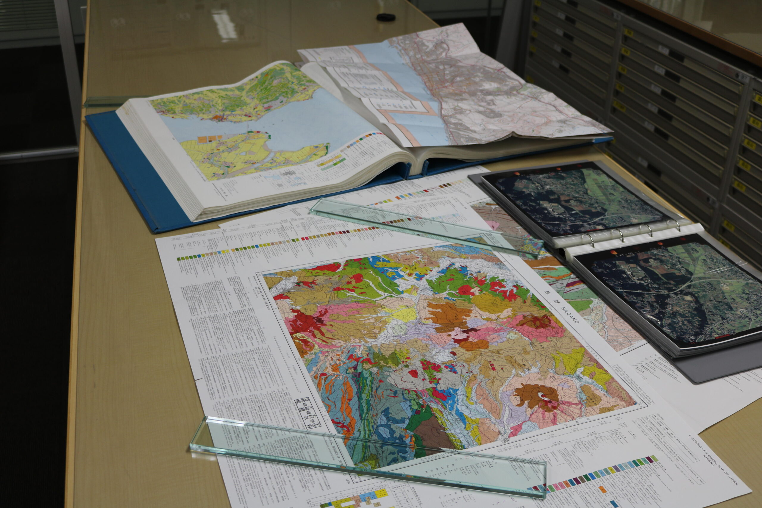 同施設は、開設から現在までに収集したさまざまな地図類をはじめ、日本で有数の資料数を誇っています。収蔵されている地図類には、国内では、国土地理院発行の地形図をはじめ、地質図、土地利用図、植生図、さらに国外の地形図などが含まれます。
