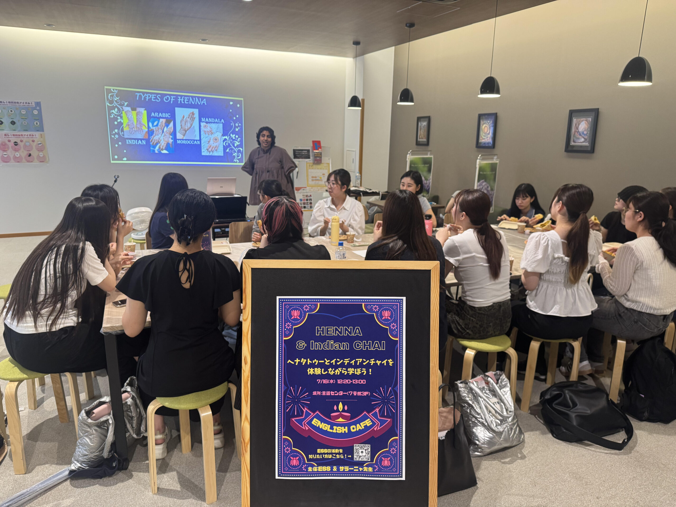 ステラ・マリス・カレッジとは、既にオンラインを活用した交流が始まっており、2025年7月16日に開催したEnglish café「Henna&Indian Chai」では現地の学生とオンラインで繋がり交流を深めました。参加した学生たちはボディーペイントの一種であるヘナ(メヘンディ)について、インド社会におけるヘナの文化的、社会的な意味について学びながら、実際にヘナデザインを体験しました。英語を使用しながら同世代の学生とリアルタイムで異文化体験をすることは、英語のコミュニケーションスキルが向上するだけでなく、新たな視点を得て学生自身の成長へと繋がるものと期待されます。